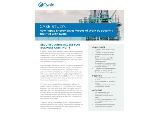 “How Rapac Energy Saves Weeks of Work by Securing Their OT with Cyolo” Secure global...