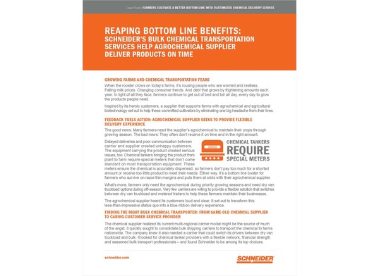 "AgroChemical Supplier Improves Bottom Line and Service with Customized, Flexible Shipping Solution" After suffering through transportation equipment failures, delayed deliveries,