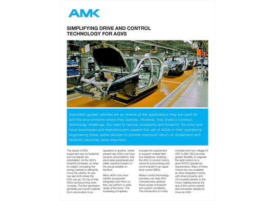 "SIMPLIFYING DRIVE AND CONTROL TECHNOLOGY FOR AGVS" Streamlining AGV motion control Automatic guided vehicles are as diverse at the applications