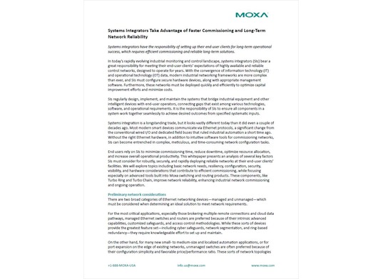 "Systems Integrators Take Advantage of Faster Commissioning and Long-Term Network Reliability" This white paper presents an analysis of several key