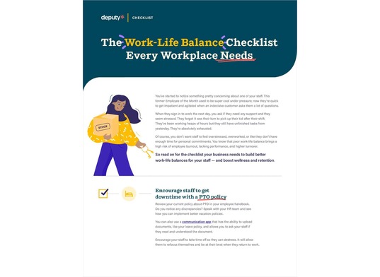 "The Work-Life Balance Checklist Every Workplace Needs" Build better work-life balances for your staff -- and boost wellness and retention Employee