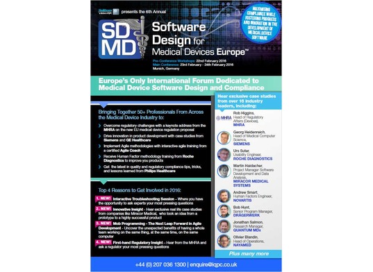 "Software Design for Medical Devices exclusive case studies, from over 16 industry leaders, including: MHRA, Siemens, Novartis, and Roche Diagnostics!"