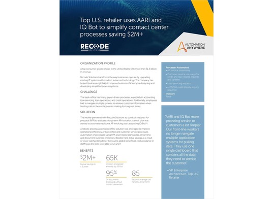 "AARI and IQ Bot simplify contact centers for leading U.S. retailers, saving them $2M+" Learn how a robotic process automation