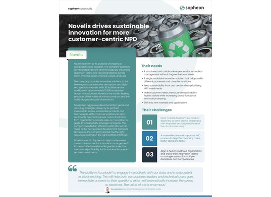 "Novelis drives sustainable innovation for more customer-centric NPD" Novelis seeks to create a more sustainable world together with its customers.